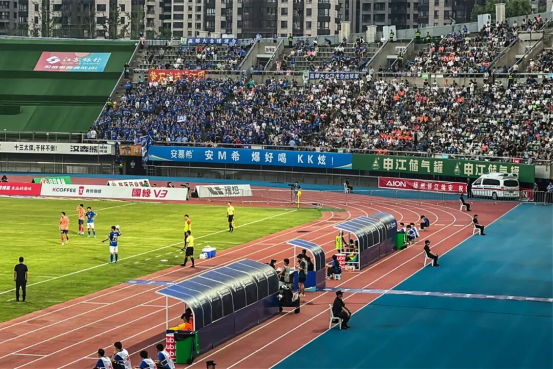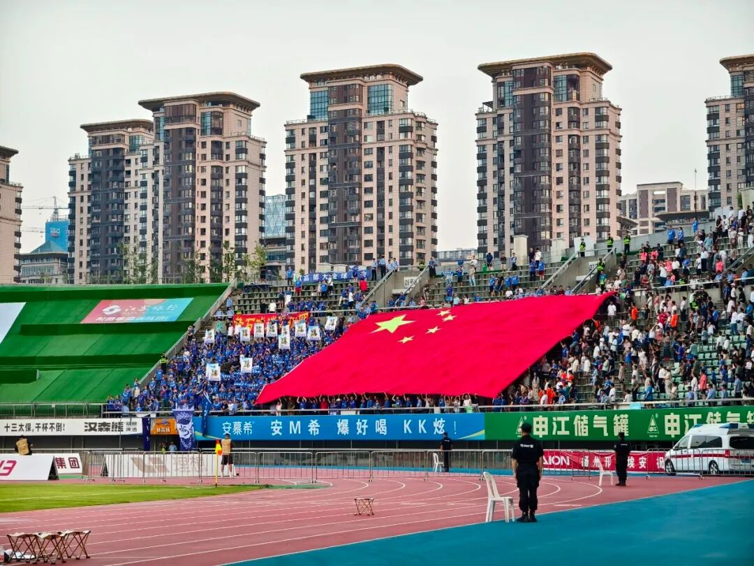 赛场之外,看台上的风景同样令人动容。扬州队的球迷们以最炽热的方式为球队加油助威,欢呼声、呐喊声此起彼伏。值得一提的是,来自黄石的球迷方阵不远千里奔赴扬州,他们用热情的助威,为扬州队注入强大的精神动力,成为赛场边一道独特而温暖的风景线。