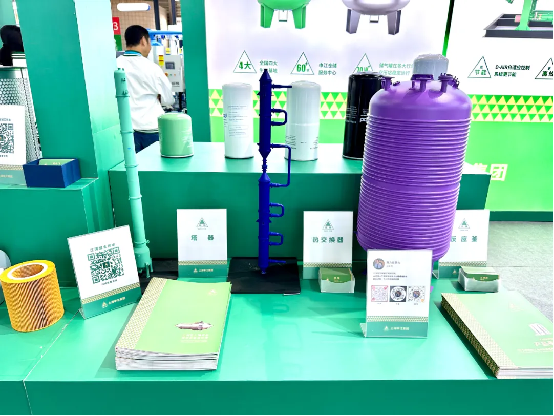在空压机耗材这块,集团展出了阿普达空压机滤芯和空压机润滑油两大系列。阿普达空压机滤芯专门负责净化空气,能把压缩空气里的杂质过滤掉,减少设备磨损;空压机润滑油是针对空压机的特点研发的,润滑效果好、还不容易氧化,能延长设备用的时间。这两类产品从日常维护的角度,帮压缩空气系统一直稳定运转,还能帮企业降低维护成本。
