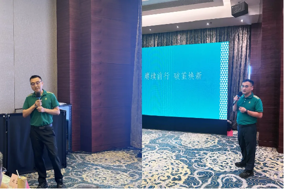 接着,油品事业部销售中心总经理董必松对上半年的工作进行了全面总结,深入分析了工作中取得的成绩与存在的问题,并详细阐述了下半年的工作安排,为油品事业部接下来的发展指明了方向。后处理事业部销售中心总经理江华则围绕后处理销售方向和政策进行宣讲,让大家对后处理业务的市场趋势和相关政策有了更清晰的认识。