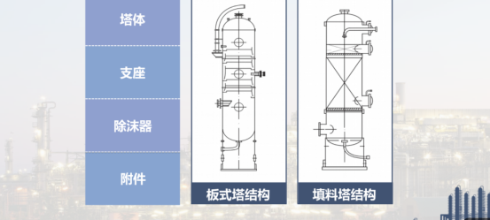根据内部结构的不同,塔器按结构形式分主要分为板式塔和填料塔两大类。